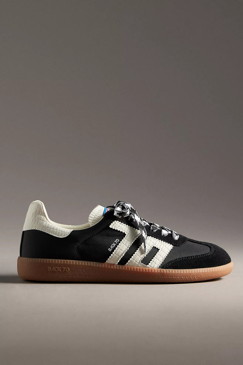 Step into sleek style and ultimate comfort with the BACK 70 Cloud Sneaker. Made with soft calf leather and fine-lined suede details, these sneakers come in a range of bright colors. The distinctive calfskin print, flat cotton laces, and white leather tongue with Back 70 label add elegant touches. Padded ankle collar and leather & cotton terry lining provide added comfort, while the lightweight rubber sole and memory rubber insole ensure a cushioned feel.