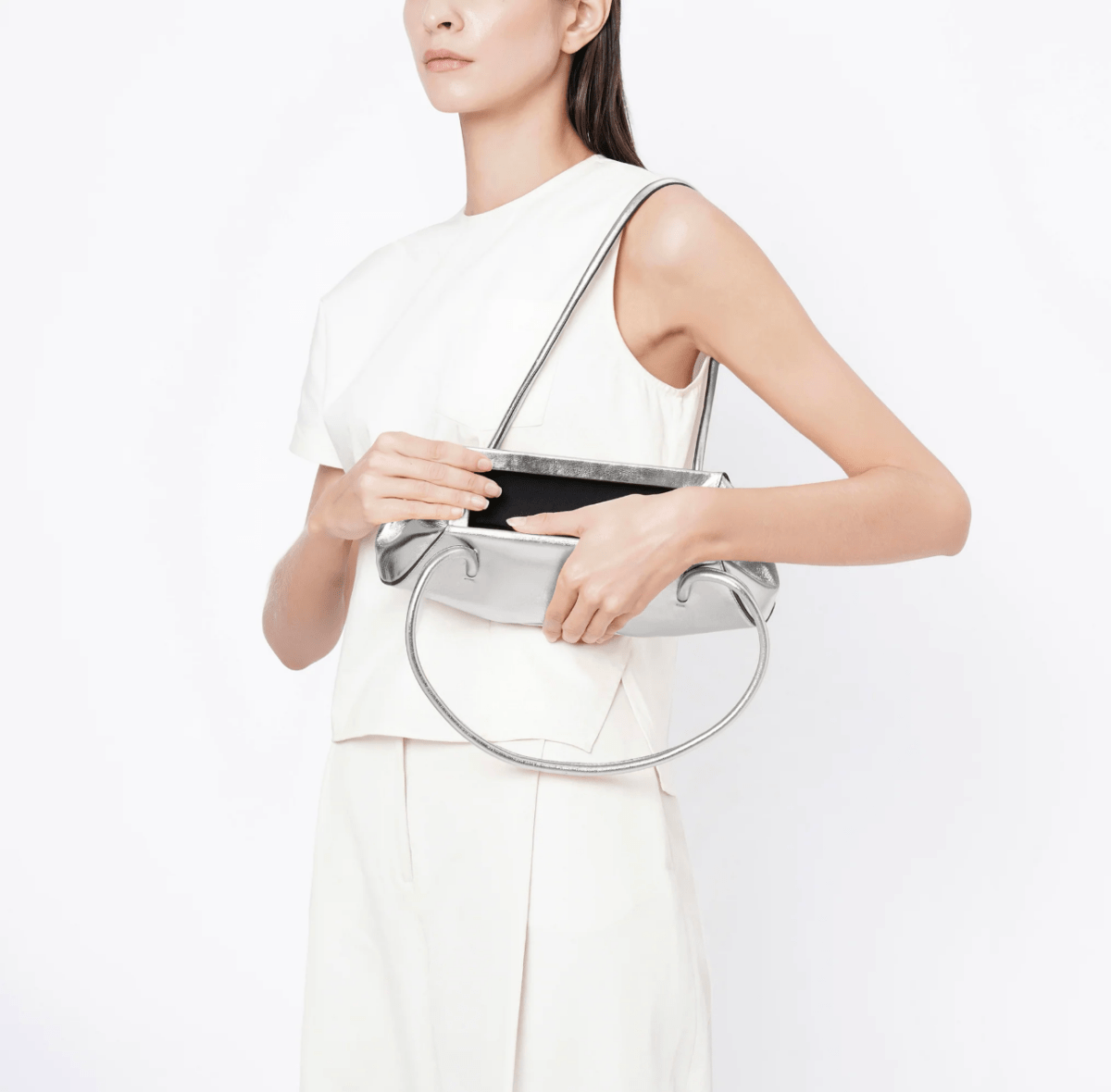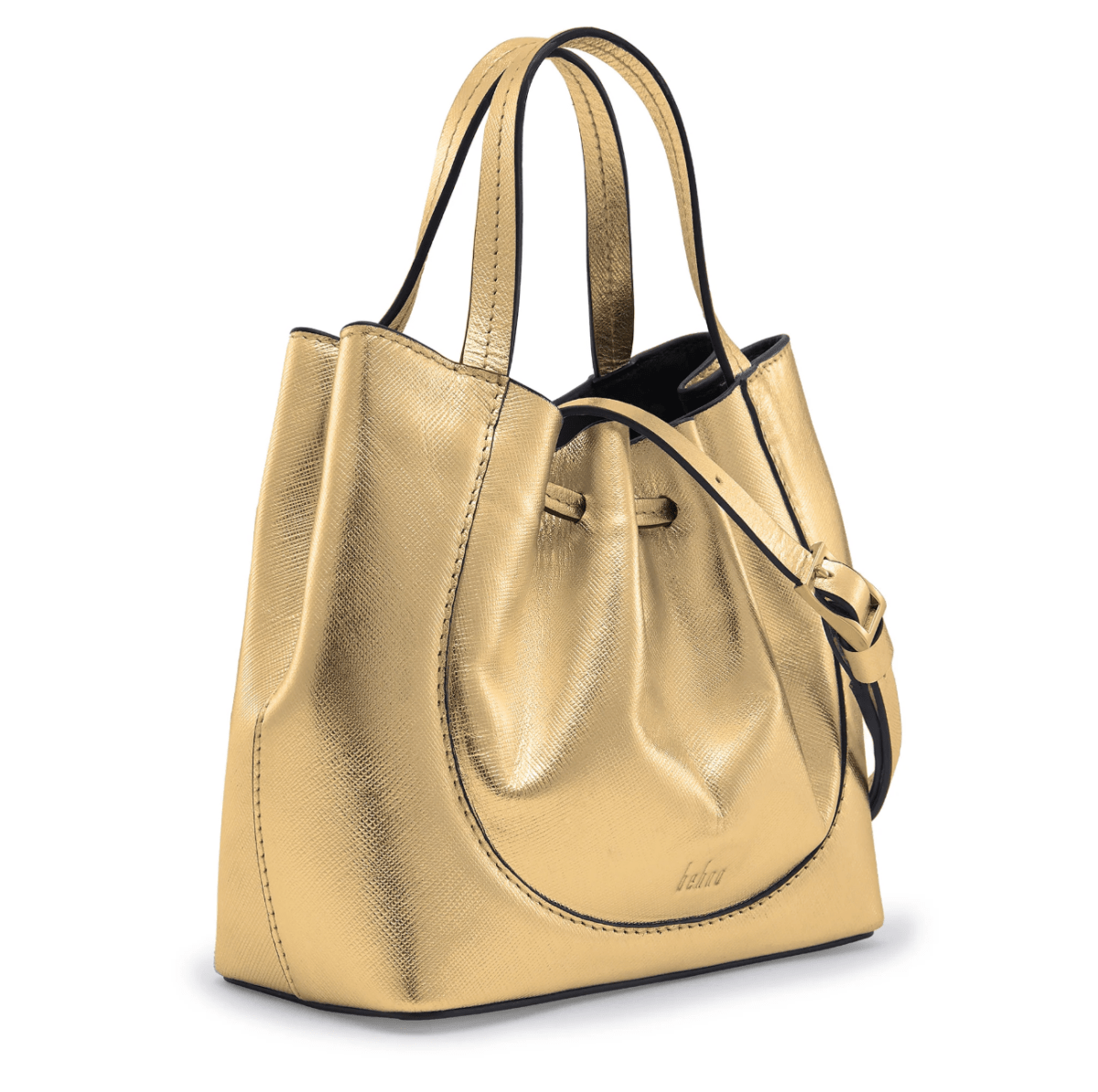 If you open our bags, the tops of some of the locks are in the shape of a wave, which is a nod towards sustainability. We also have our signature leathers, a pebbled leather and a Nappa leather.