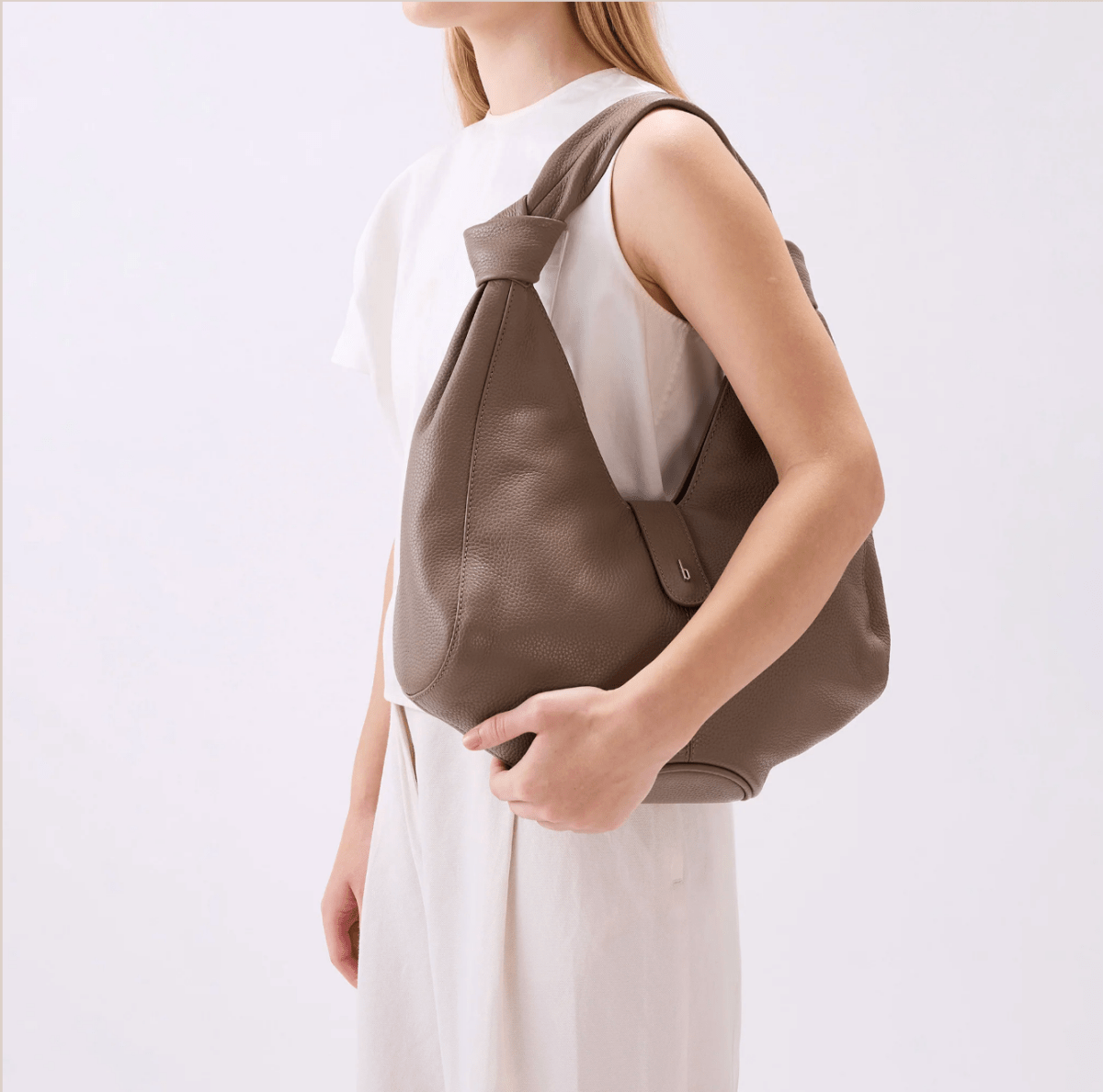 Our signature design element is the knot, used in a couple of our bags. At first glance, it's a knot — it's cute. But for us, it's very much a symbol of communities coming together, holding hands.