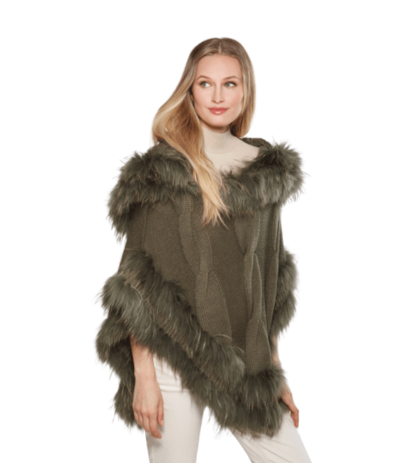 Instantly elevate your style with the Linda Richards FK111 Raccoon Poncho—the perfect blend of effortless elegance and cozy warmth.